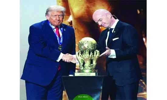 তবে আগ্রহ ছিল একজনকে নিয়েই। তিনি যুক্তরাষ্ট্রর প্রেসিডেন্ট ডনাল্ড ট্রাম্প। ফিফা সভাপতি জিয়ান্নি ইনফ্যান্টিনোর সঙ্গে তার বন্ধুত্বের কথা অজানা নয়। শোনা যাচ্ছিল, এবার থেকে ফিফা যে শান্তি পুরস্কার চালু করেছে, তার প্রথম প্রাপক ট্রাম্পই। সেটাই হয়েছে। নোবেল শান্তি পুরস্কার না পেলেও ফিফার পুরস্কার পেলেন ট্রাম্প। এক ভিডিওতে তিনি কীভাবে ভারত-পাকিস্তান, কম্বোডিয়া-থাইল্যান্ড, মিশর-ইথিওপিয়া যুদ্ধ থামিয়ে গোটা বিশ্বে শান্তি এনে দিয়েছেন, তা দেখানো হয়। ট্রাম্পের গলায় স্বর্ণ পদক পরিয়ে দেন ইনফ্যান্টিনো। বিশ্বকাপের বাকি দুই আয়োজক দেশ মেক্সিকোর প্রেসিডেন্ট ক্লদিয়া শিনবাউম এবং কানাডার প্রধানমন্ত্রী মার্ক কার্নি ছিলেন।