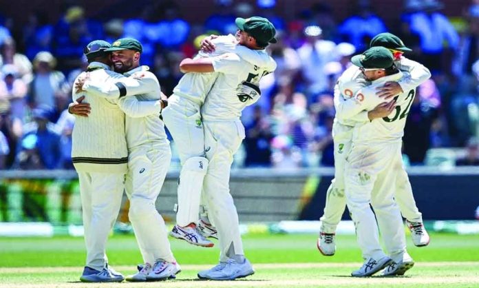 বল হাতে অস্ট্রেলিয়ার স্টার্ক-কামিন্স ও নাথান লিঁও ৩টি করে উইকেট নেন। দুই ইনিংসে যথাক্রমে ১০৬ ও ৭২ রানের সঙ্গে ম্যাচে ৬ উইকেট নিয়ে সেরা খেলোয়াড় হয়েছেন অস্ট্রেলিয়ার উইকেটরক্ষক অ্যালেক্স ক্যারি।