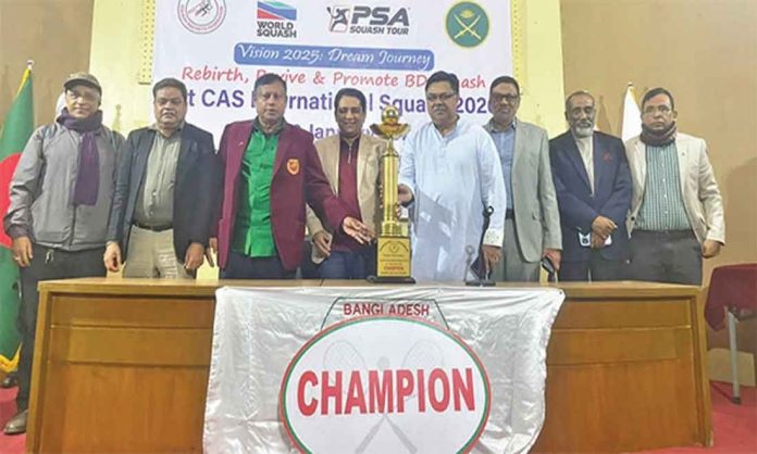 আগামী ২ জানুয়ারি ঢাকা সেনানিবাসের আর্মি স্কোয়াশ কমপ্লেক্সে শুরু হবে সিএএস আন্তর্জাতিক স্কোয়াশ। গতকাল সোমবার এই প্রতিযোগিতার ট্রফি উন্মোচন করা হয় । এতে ভারত, পাকিস্তান, মালয়েশিয়া, হংকং, কুয়েত, বাহরাইন, জাপান, মিশর, বেলজিয়াম ও বাংলাদেশসহ মোট দশটি দেশের বাছাই করা ২৪ জন বিশ্ব র্যাংকধারী পেশাদার স্কোয়াশ খেলোয়াড় অংশ নিচ্ছেন।